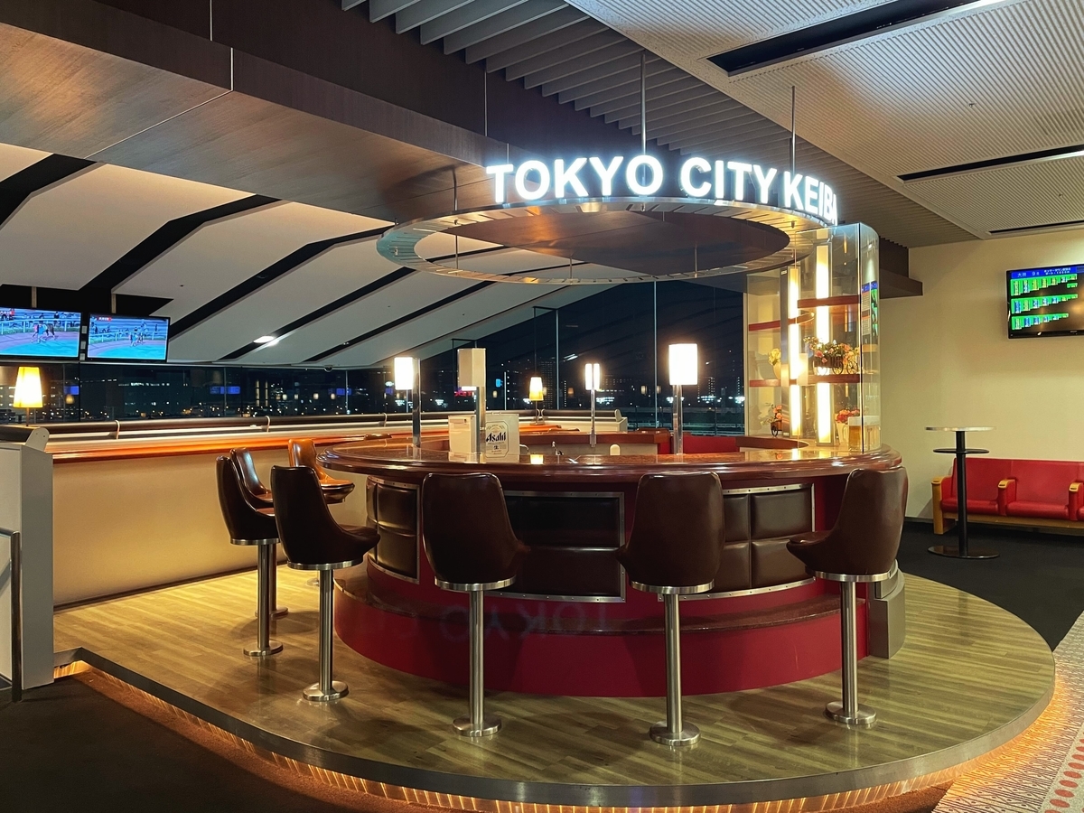 今回の写真をご紹介しますがバーカウンターのようなエリアもあってもはやここが競馬場であることを忘れてしまいますw今回自分が予約したのはレビューで最も席がゆったりと評判だったスカイシート。