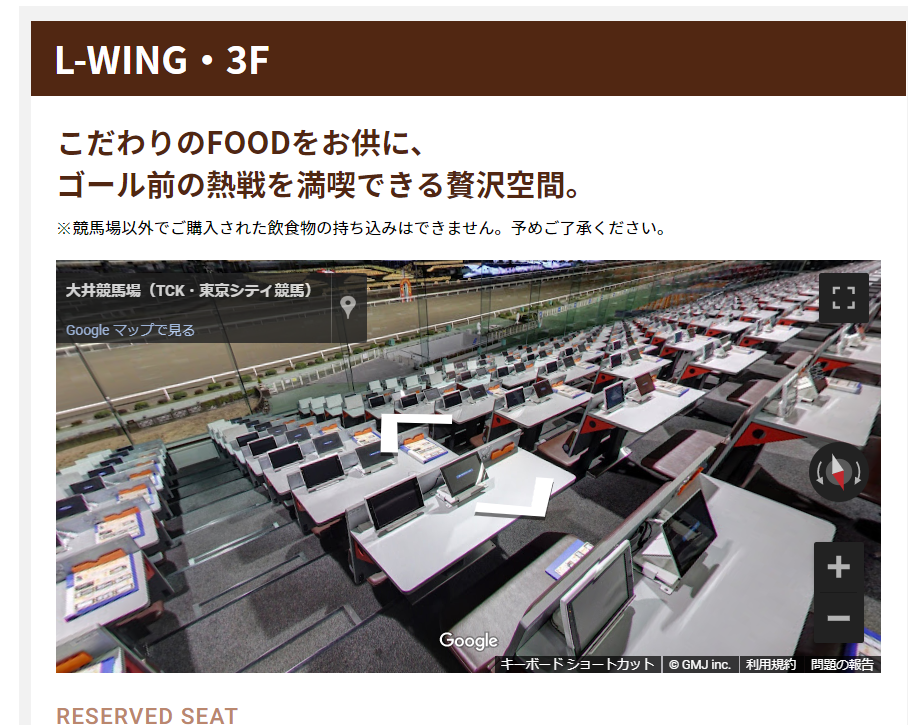 一見さんの自分には選びきれないと思い、大井競馬場体験記的なブログやYouTubeを参考に今回はゴール前に近い位置でレースを見たいという希望からL-WING指定席を購入しました。