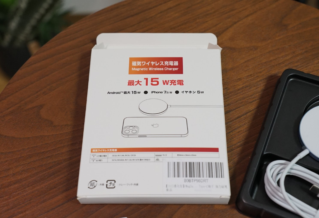 箱裏には最大15W充電可能という記載。